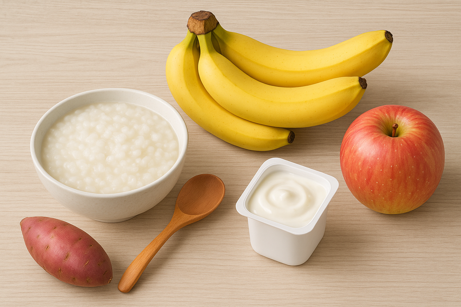🍎 사과(익혀서) : 펙틴 성분이 장 점막을 보호해 설사를 줄입니다. 과일을 익히면 섬유질이 부드러워져 소화가 좋아지며, 연구에서 사과 퓌레가 수분 보충과 영양 공급에 유용하다고 해요.